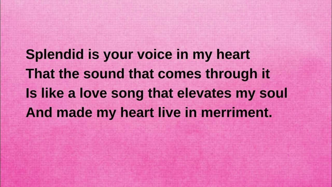 For the wife of my youth, I wrote this short collection of wife appreciation poems just to let her know that she is the one and only true love of my life. "How Splendid", is about a man's love for his wife. When you adore the naturalness of the woman in your life, you will appreciate the gift of nature in her. How Splendid How splendid is the minute I saw the dawn of a new day How pleasant is the hour That I behold the dimming brightness. How wonderful is the moment When an amazing breeze blew But all I heard through it all was The echoed sound of your voice. Splendid is your voice in my heart That the sound that comes through it Is like a love song that elevates my soul And made my heart live in merriment.